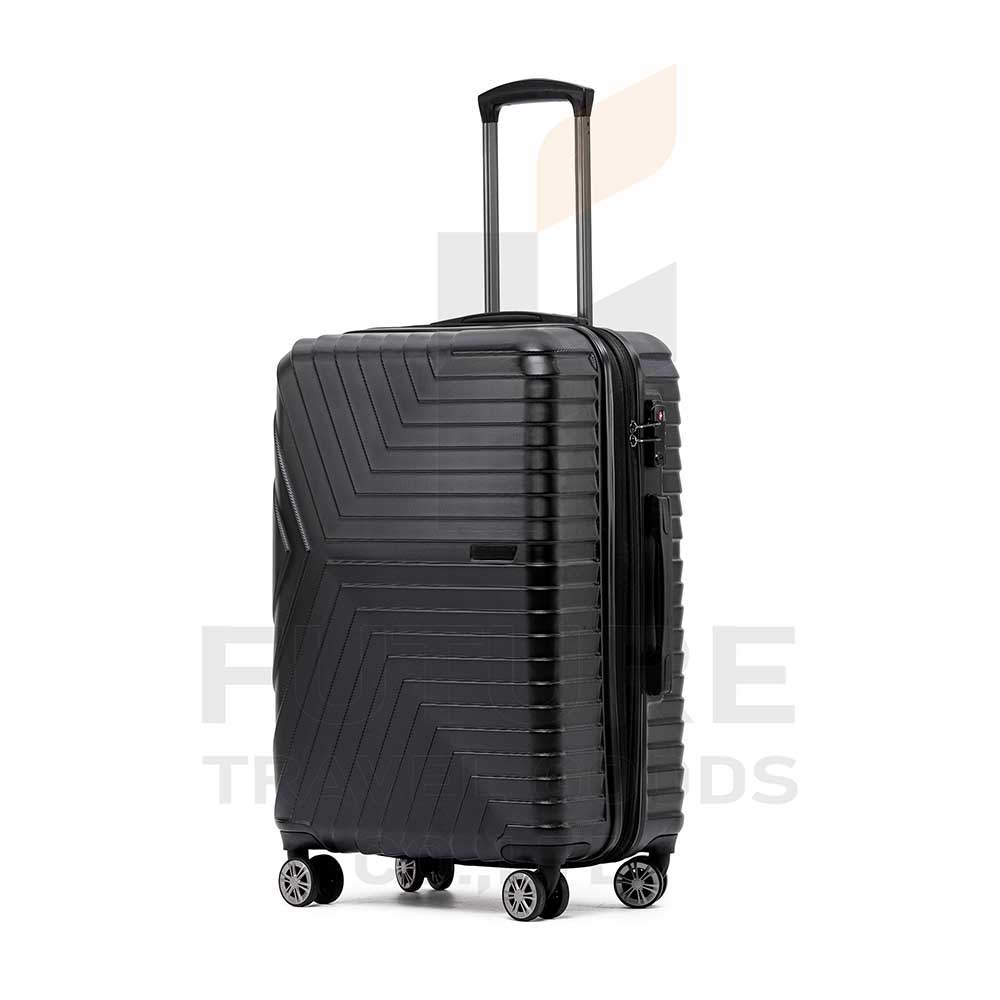 This trolley case features an urban mecha style. The all – black main tone, like night armor, carries a hardcore aura. The interlaced geometric lines on the case surface resemble the energy patterns of mecha armor, tough and full of technological tension, blending industrial aesthetics with a futuristic feel. When pushed, it seems to bring the “explorative courage of urban pioneers” into the journey. It’s an ideal companion for those who pursue a tough style and favor a tech – inspired texture, exuding a cold and cool charm with every trip.
