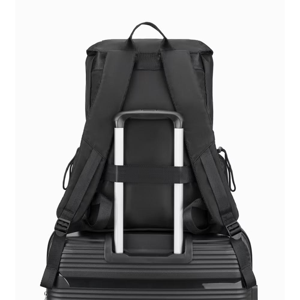 This backpack features a functional – style pragmatism design. The all – black color creates a cool and sleek tone. The flap, multi – pocket, and drawstring designs balance storage flexibility and outdoor functionality. Combining tough lines with a three – dimensional structure, it suits both the casualness of urban commuting and meets the loading needs of short trips. It’s a travel essential that deeply integrates fashion and practicality.