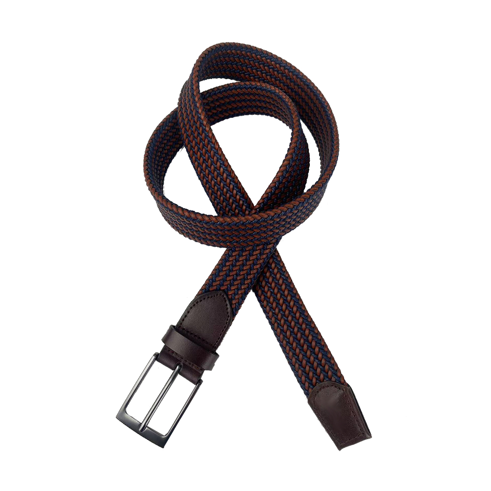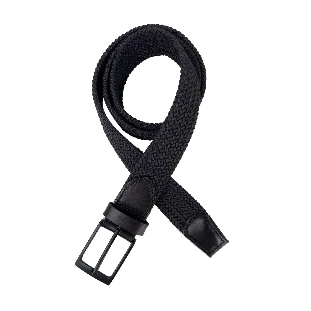 This belt features a woven elastic strap combined with leather details, presenting a minimalist and sleek style. The all – black woven texture, paired with leather accessories and a matte buckle of the same color, exudes an understated yet refined quality. The elastic strap fits various waist sizes, effortlessly suiting both casual and light – business scenarios, and outlines a philosophy of free – spirited dressing with its clean lines.