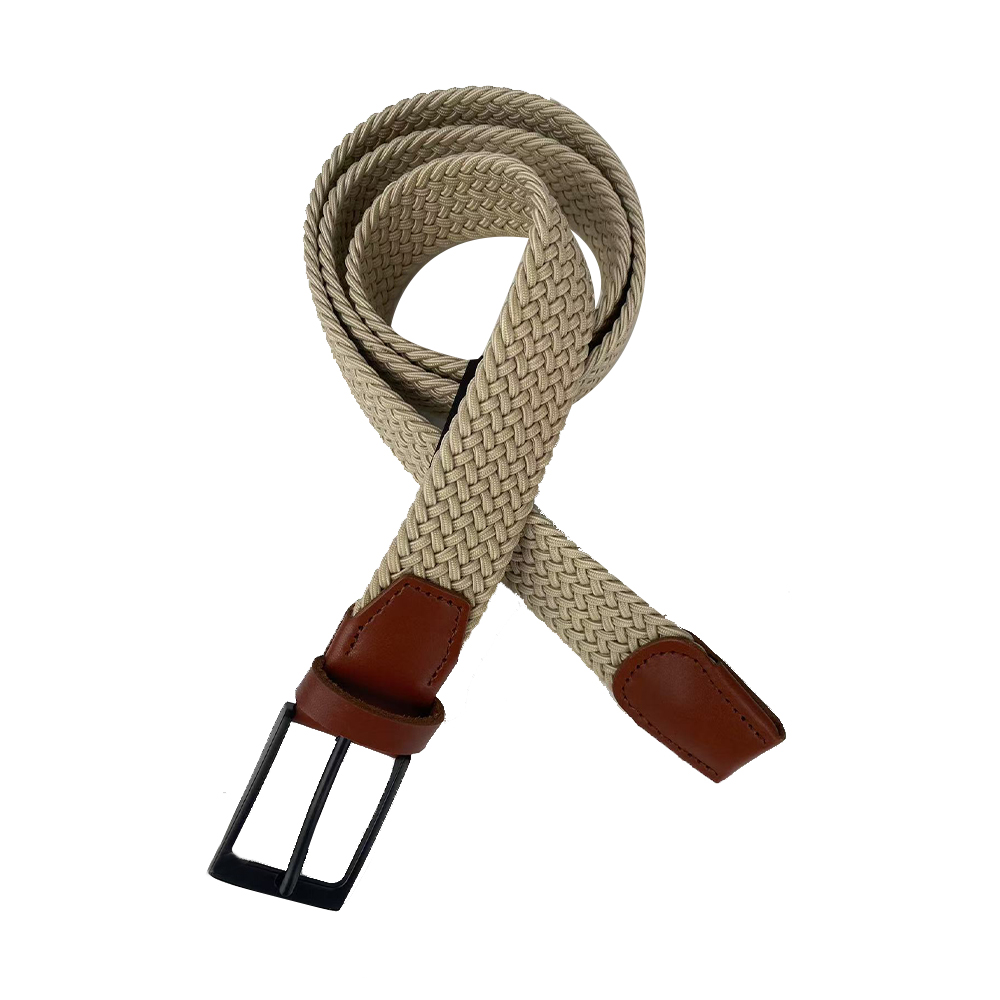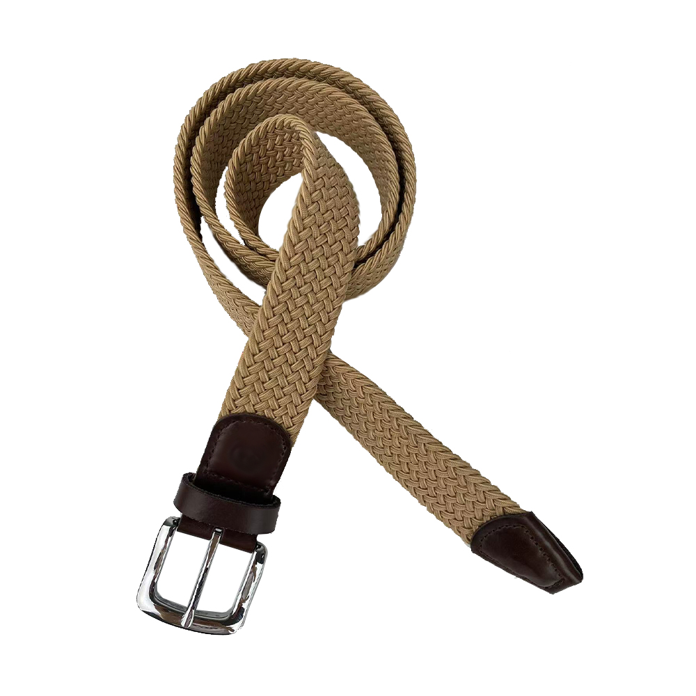 These two belts feature woven elastic straps paired with leather accessories, interpreting a casual and elegant style. The light beige woven texture is soft and delicate, matched with brown/dark brown leather and metal buckles. The colors are harmonious and the details are exquisite. The elastic straps fit various waist sizes, infusing casualness and texture into outfits for both daily leisure and light – business scenarios, conveying a free – spirited aesthetic with simple design.