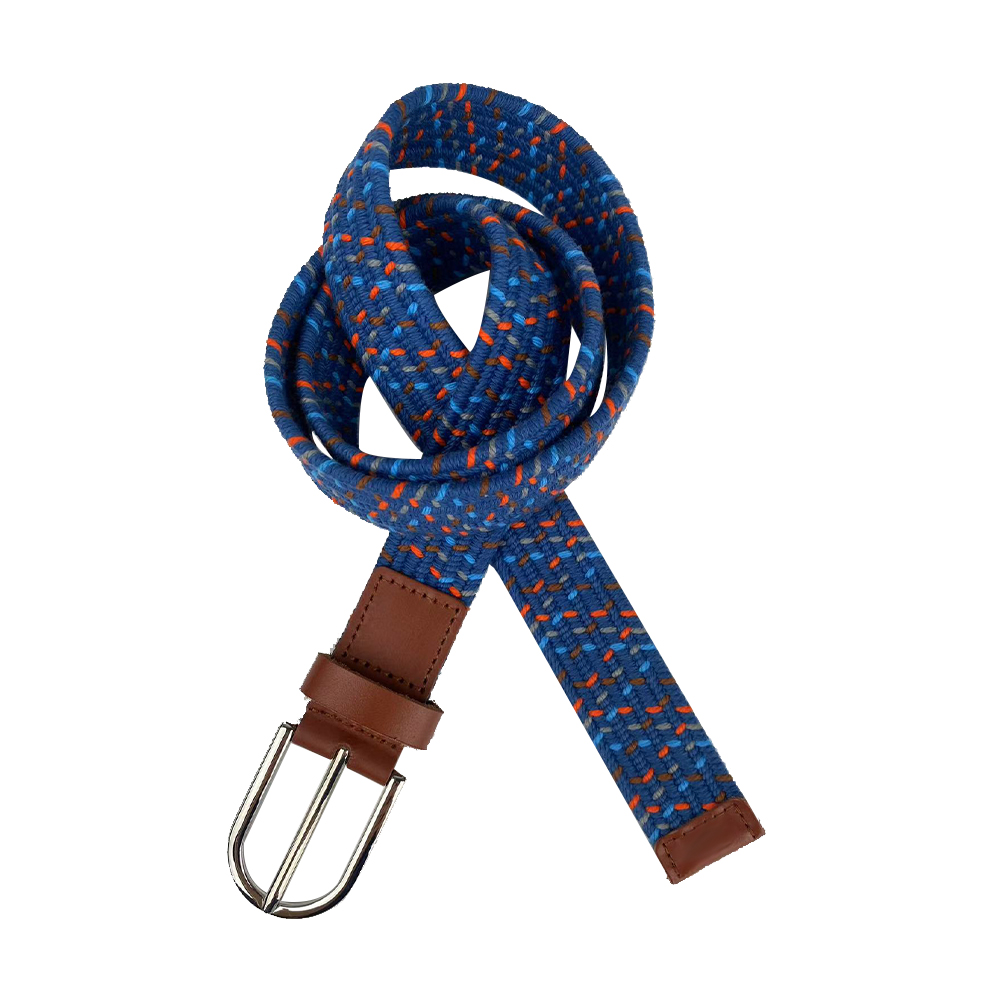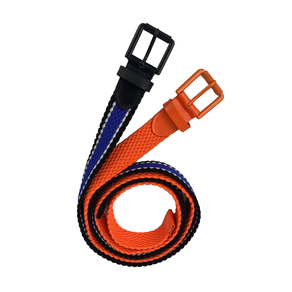 This belt set combines color – block weaving with leather buckles to create a vibrant style. The woven belt body, interlaced with colors like orange and blue, paired with black and orange leather buckles, showcases a bold color scheme full of personality. The elastic weaving fits various body shapes. Whether for sporty or street – style outfits, it can be an eye – catching highlight, igniting the passion for dressing with vivid colors.