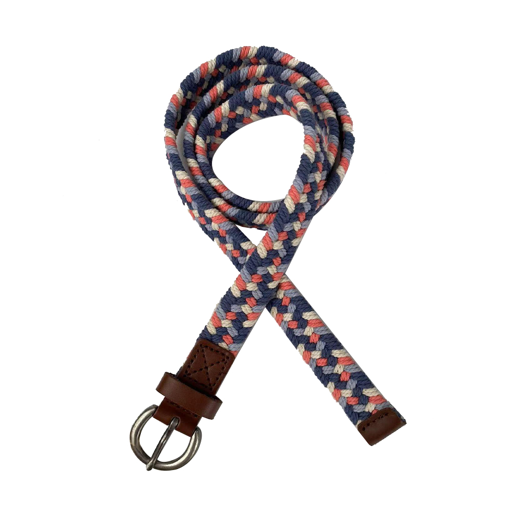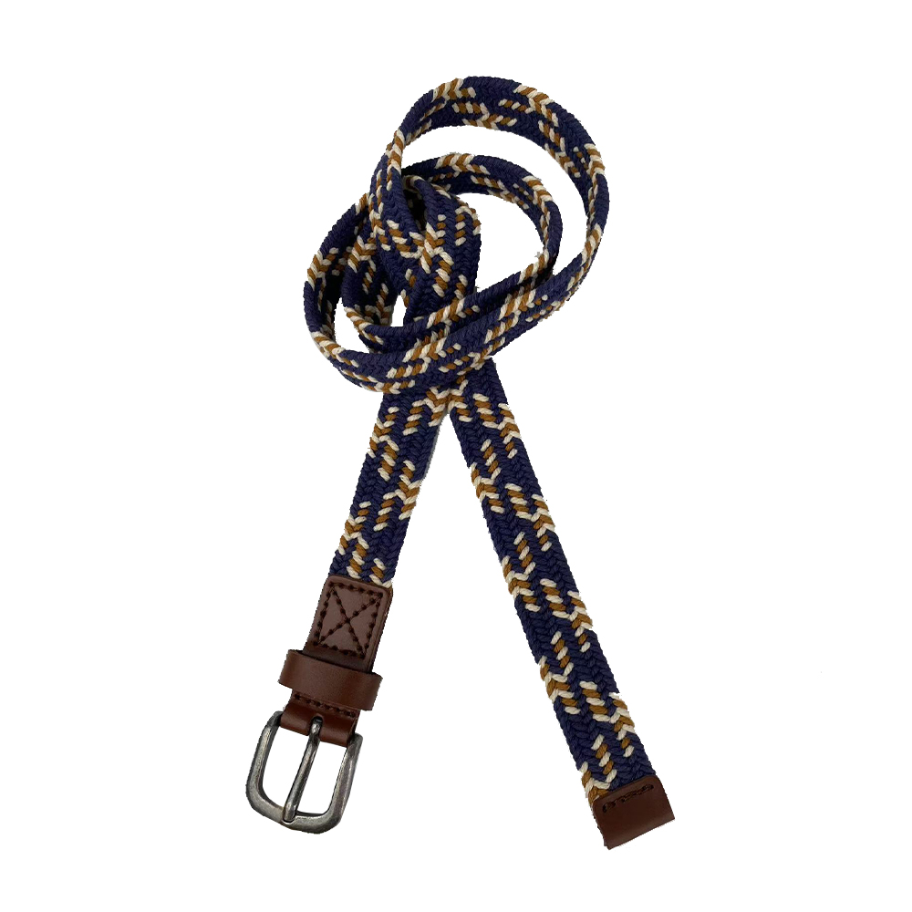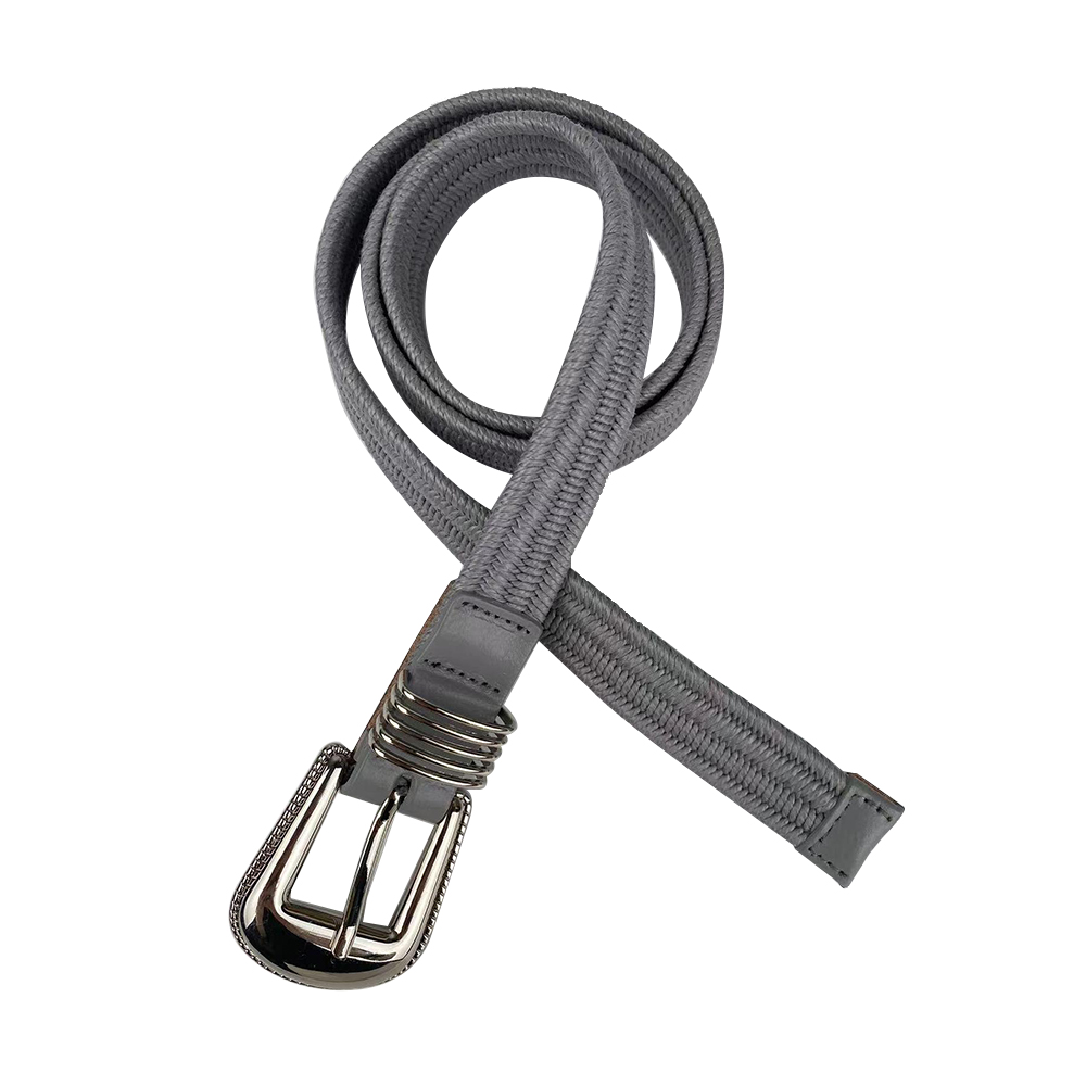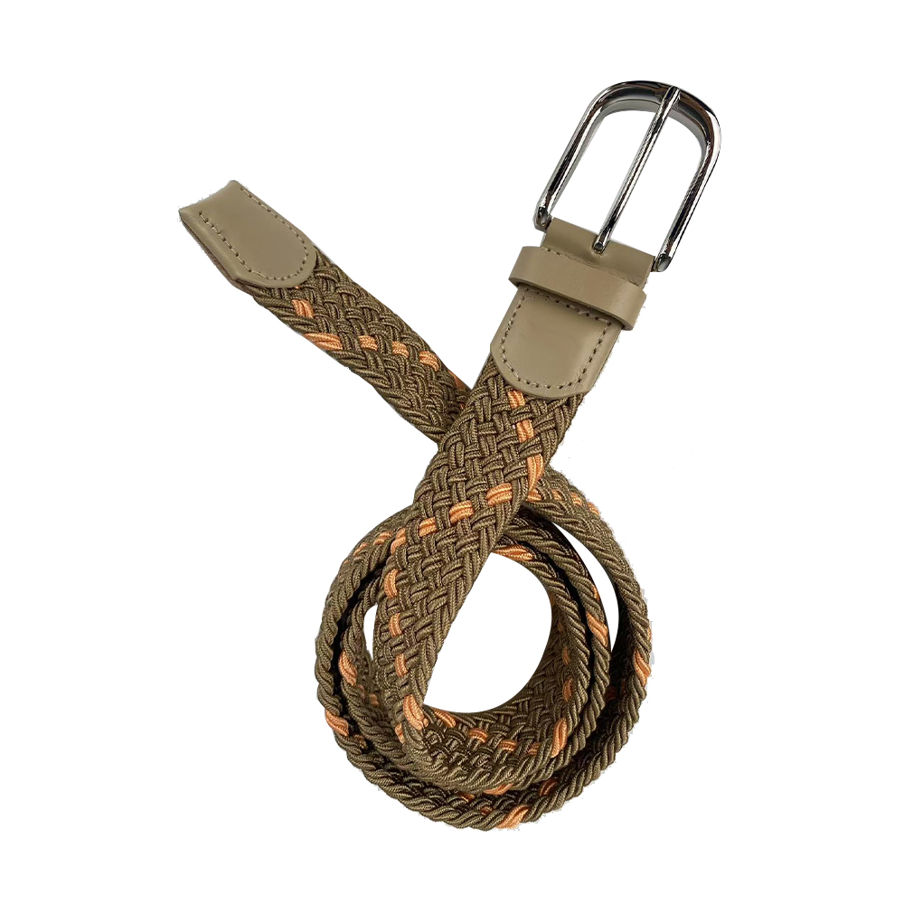 This belt outlines a unique style with woven texture combined with color – contrast stitching. The khaki woven belt body, adorned with orange accents and paired with a leather buckle of the same color, hides ingenuity in simplicity. The elastic belt suits various scenarios, infusing casualness and vitality into daily outfits, and interpreting relaxed fashion with delicate design.