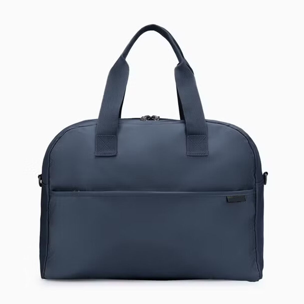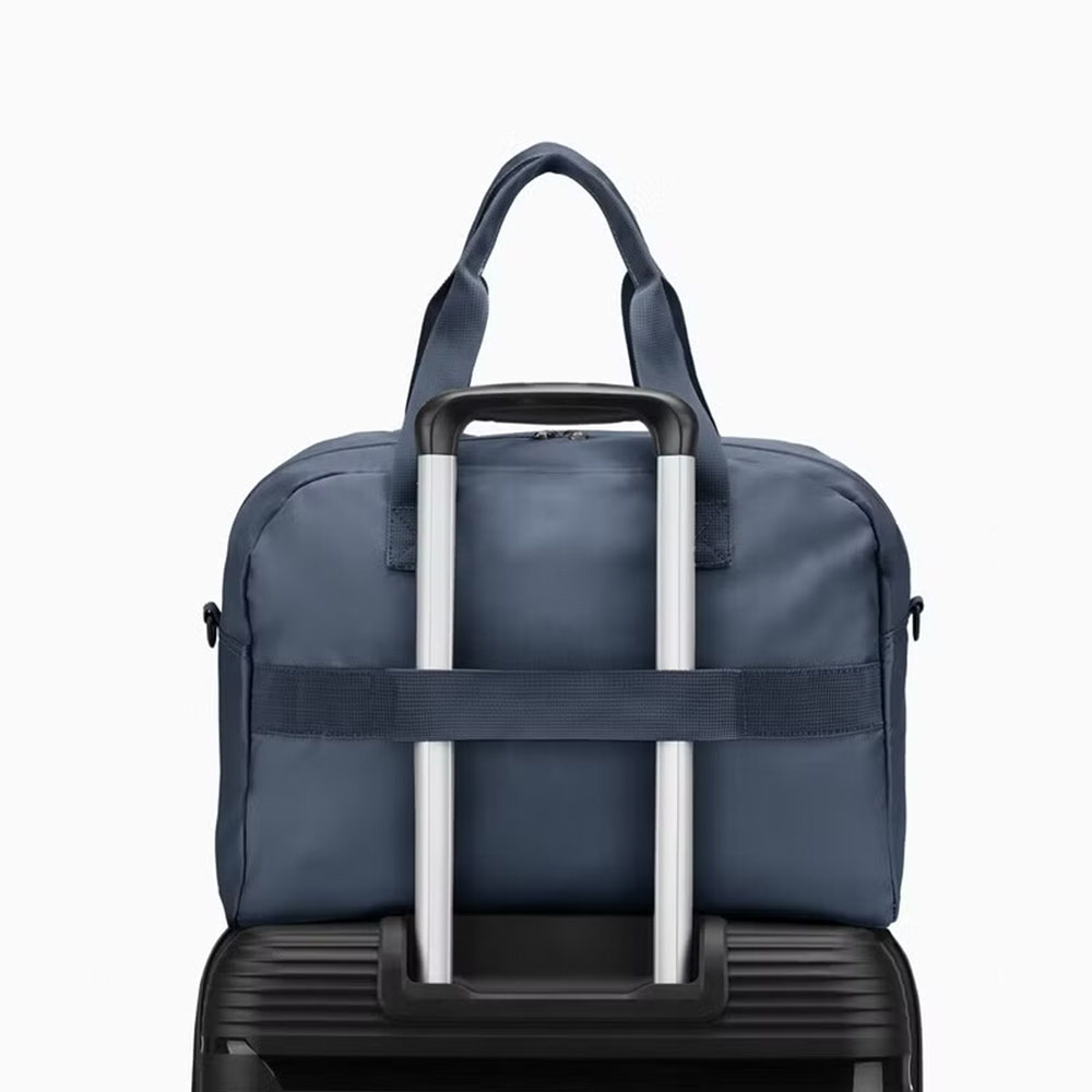 This laptop bag features a business – minimalist style. The calm dark blue color, paired with neat lines and practical multi – pocket design, exudes a strong sense of texture. The hand – carrying form suits business scenarios, and the large – capacity space can properly store laptops and office items. With a low – key and restrained temperament, it interprets the professional and reliable workplace travel aesthetics.