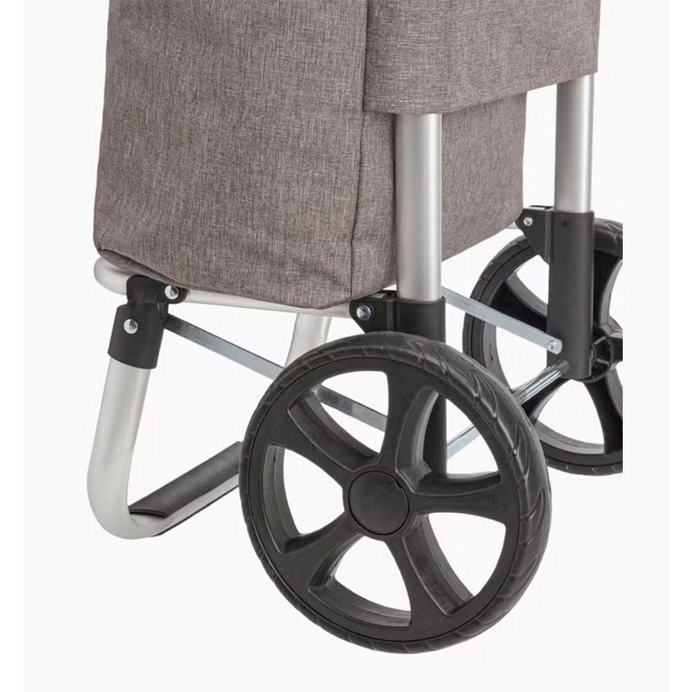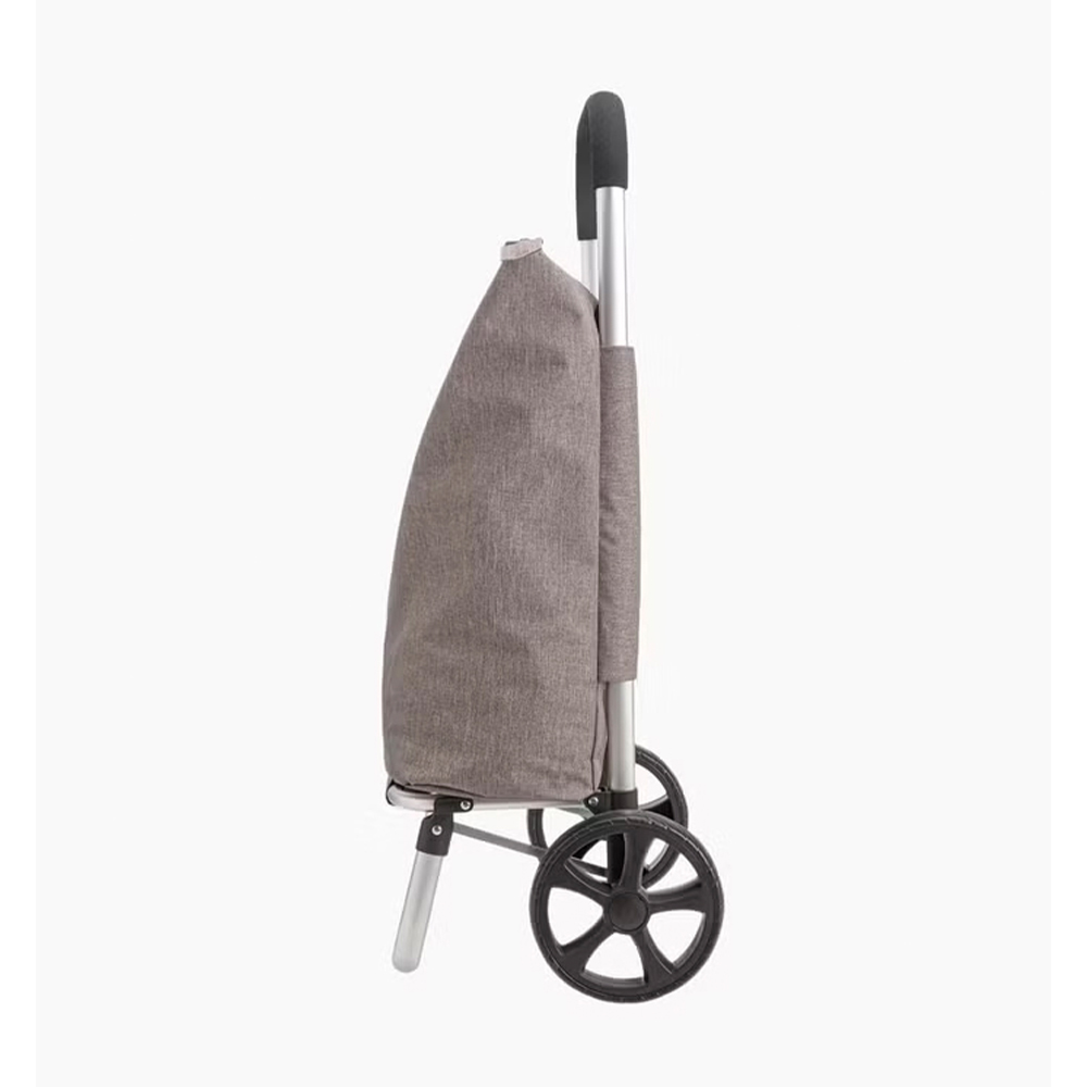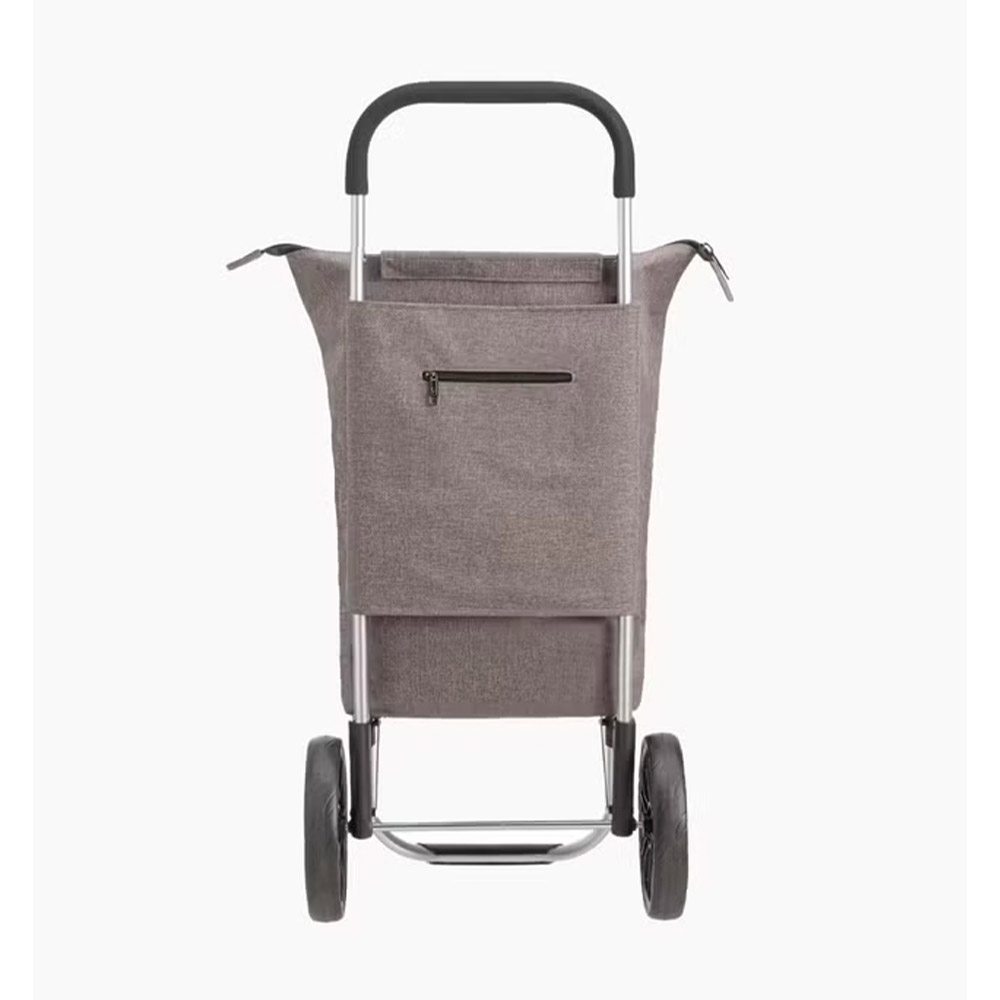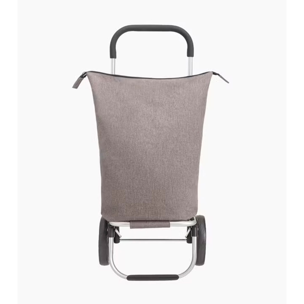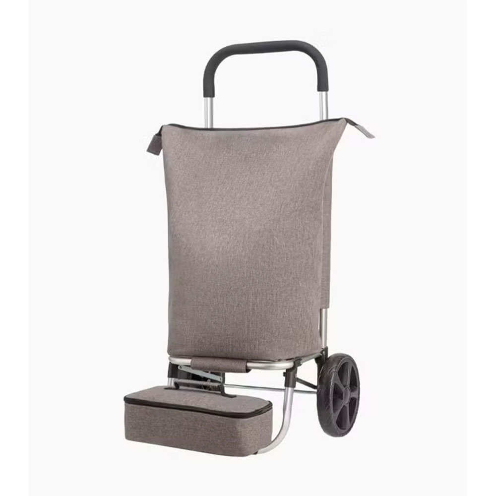 This shopping cart features a simple and practical portable design style. The light – gray fabric bag body, paired with a metal frame and rubber wheels, is lightweight yet sturdy. The foldable and easy – to – store features suit scenarios like grocery shopping and short – distance purchases. With a low – key and convenient user experience, it interprets a relaxed and comfortable lifestyle.